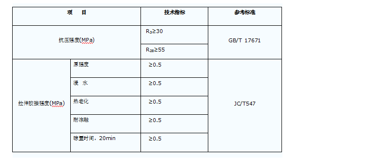 拉伸粘接強度的測定執行JC/T547《陶瓷墻地磚膠粘劑》。